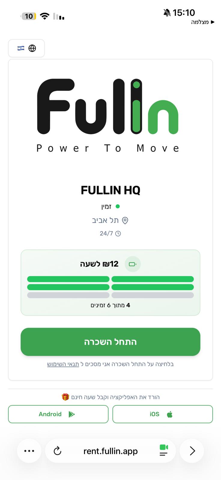 שכרו מטען נייד תוך שניות מכל עמדת FULLIN, והחזירו בכל עמדה ברחבי הרשת.